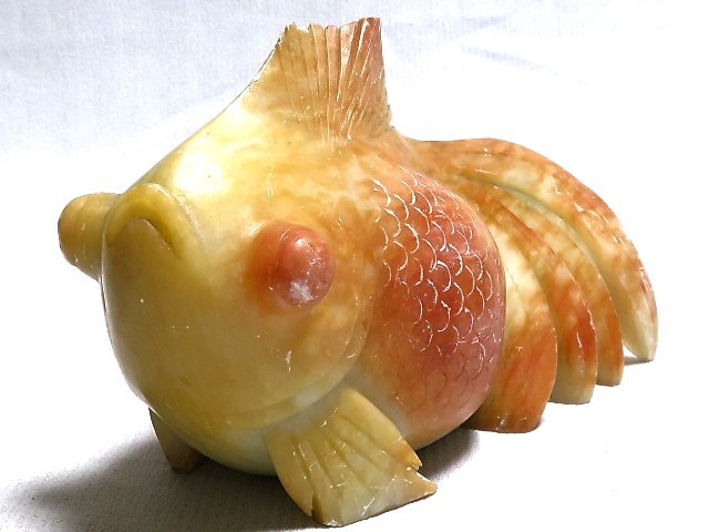 - 石彫金魚 重さ約2496g 彫刻細工 砡石 置物 飾り物