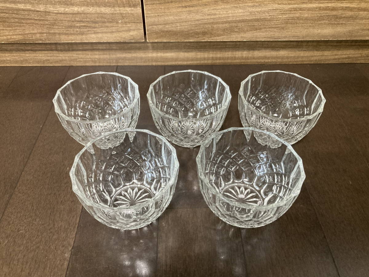 - ☆新品未使用・旧家蔵出し・昭和レトロ・ガラス小鉢・ガラス・小鉢・5客セット・アンティーク・レトロ☆