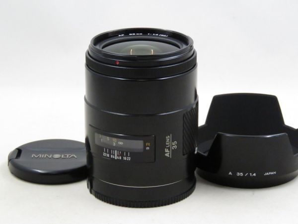 - [20800V1]★ほぼ新品級★MINOLTA AF 35mm F1.4 SonyA 初期型 フード付き