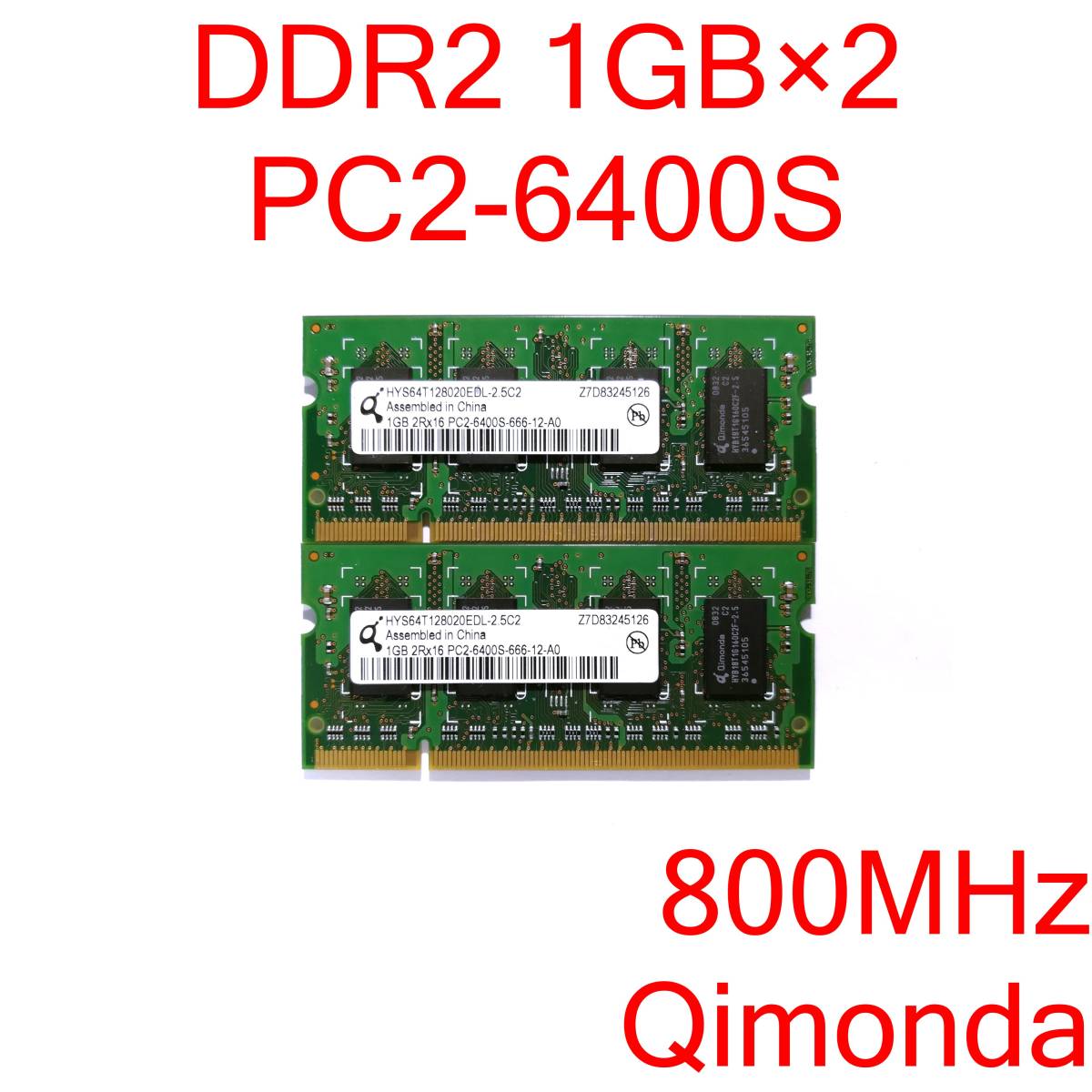 > DDR2 SO-DIMM PC2-6400S 1GB 2枚 計2GB ノートパソコン用メモリ Qimonda HYS64T128020EDL-2.5C2 [D2S#188]