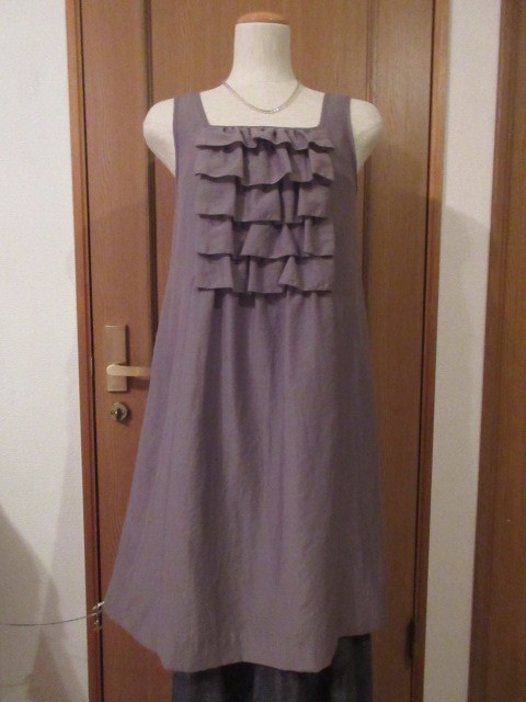 > J)■ブランド品■【MELROSE メルローズ】■手洗い可能/ポリ/グレージュ■胸元5段フリル&ギャザー■前後縦4本の着痩せ切替!SM素敵なOP