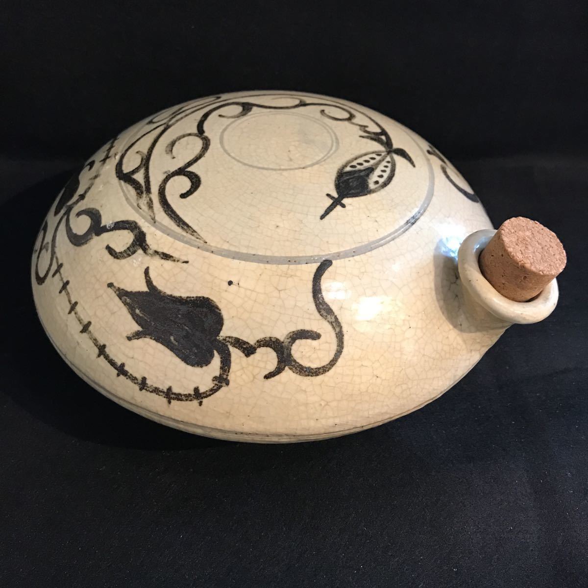 - 李朝 朝鮮 平瓶 白磁 鉄絵 8 コレクター放出品 蔵出し