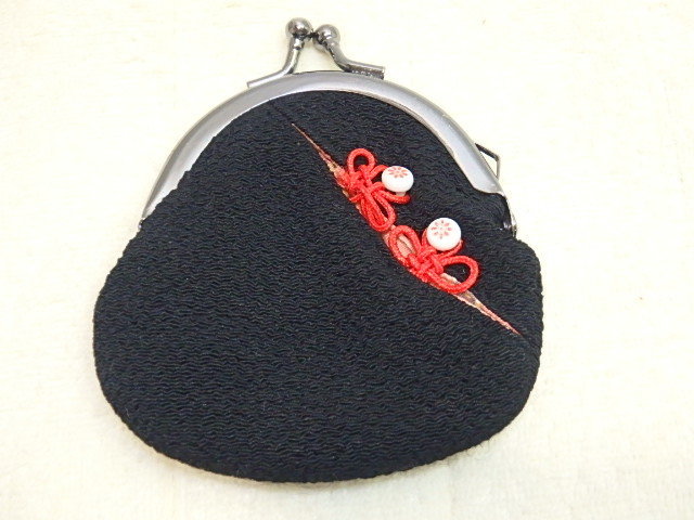 - n206u 中古 笑夢琉 黒 がま口 財布 コインケース 財布 和風 レディース 女性用