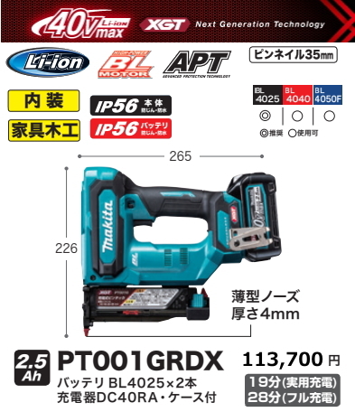 - マキタ 充電式 ピンタッカ PT001GRDX 40V 2.5Ah 新品