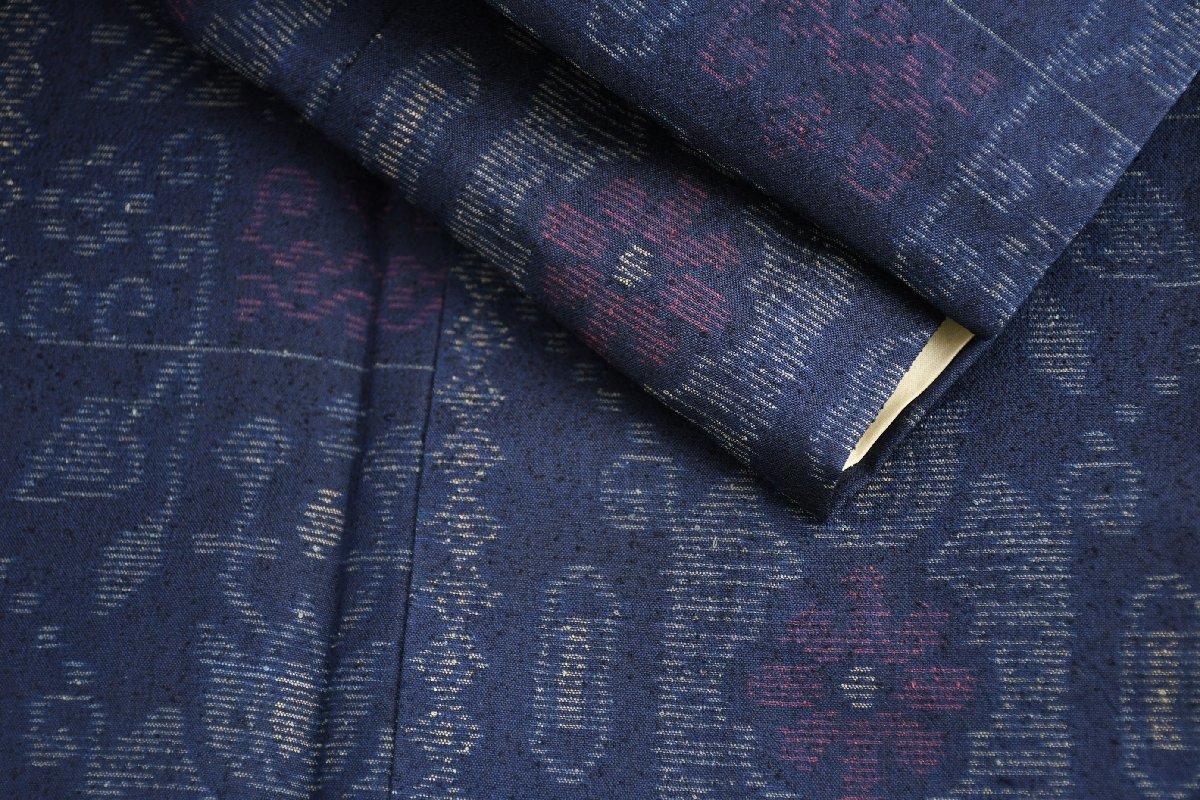 > 紬 つむぎ 単衣 菊 幾何学模様 葉 身丈155cm 裄丈63.5cm ★着物 pb-2541 桜庭呉服店
