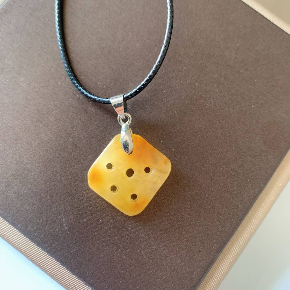 - ◇蜜蝋琥珀◇ネックレス◇ペンダント◇蓮根形 彫刻◇パワーストーン◇天然石◇巾着袋付き010P9157