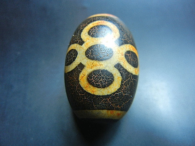 - ★西蔵至純天珠★XT9049 牙黄 五眼稲妻 特上級 29mm火供龍紋 入手難