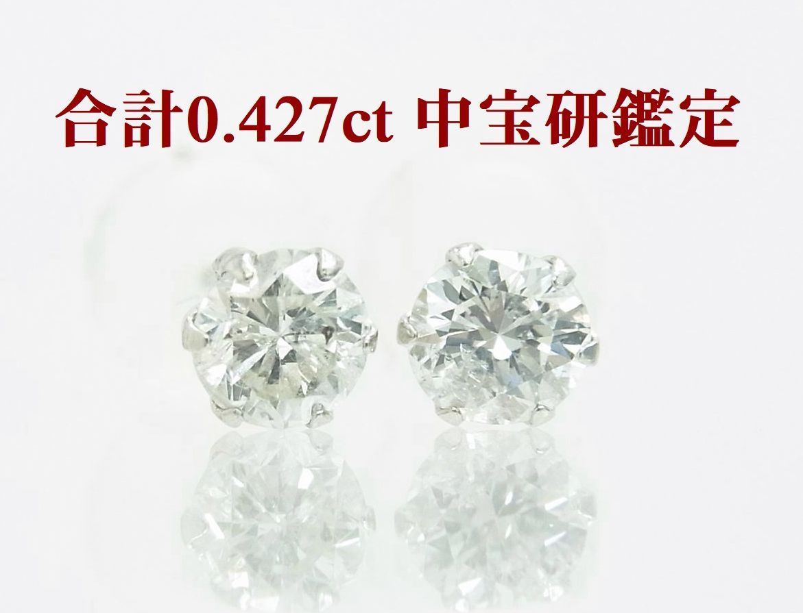 > 中央宝石研究所鑑定済石 高コスパ 合計0.427ct 天然ダイヤモンド 一粒石ピアス プラチナ 送料込み 商品動画あり