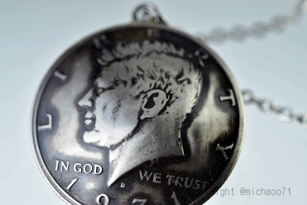 - ビンテージ コインペンダントトップ、(11281-494 )ドーム状加工の個性的 コインペンダント、本物の外国コイン
