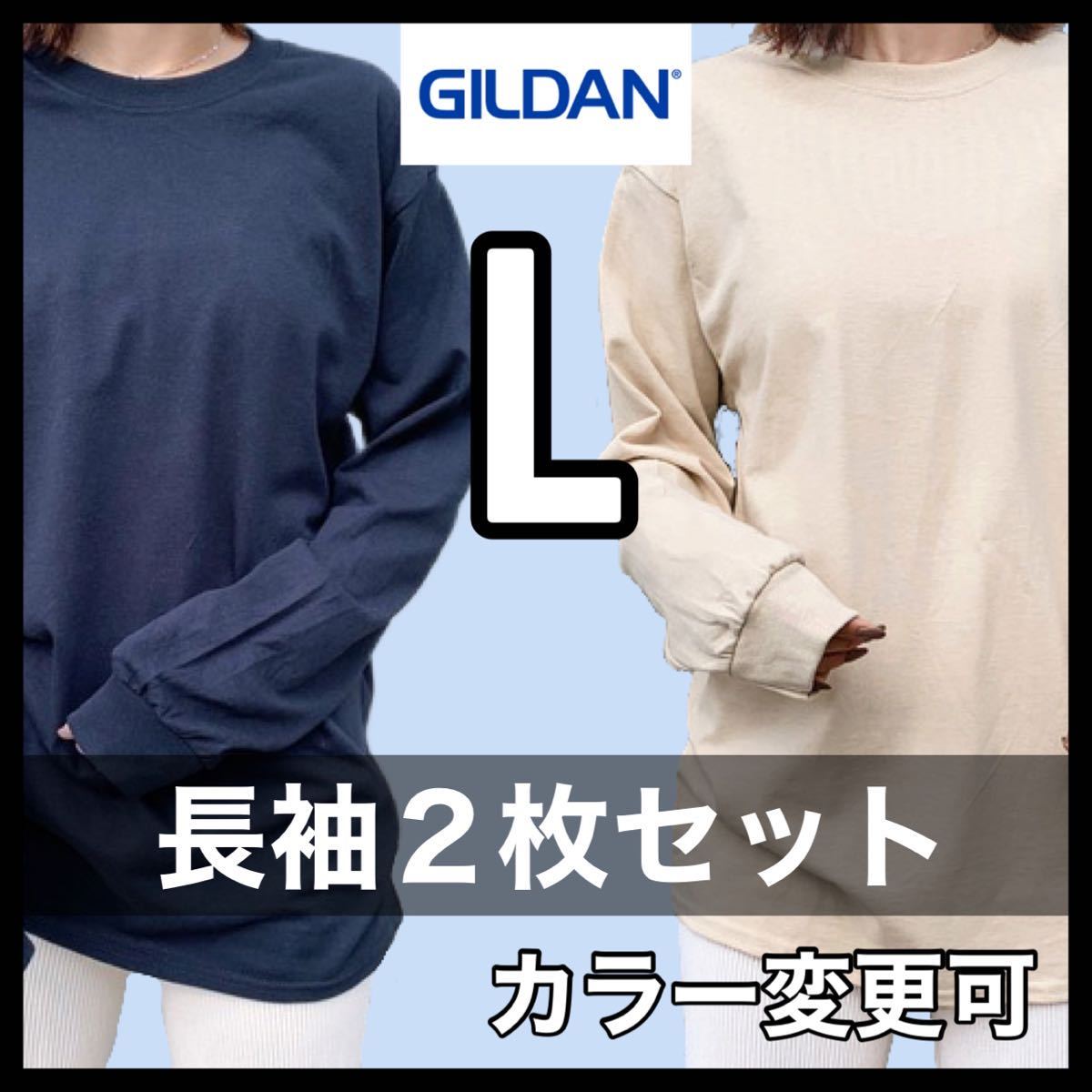 - 新品未使用 ギルダン 6oz ウルトラコットン 無地 長袖Tシャツ ロンT 黒 ブラック ベージュ 2枚セット Lサイズ ユニセックス GILDAN 丸首