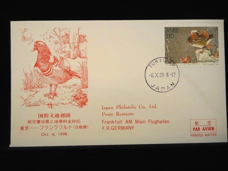 - 国際文通週間 航空書状第2地帯料金対応 1998年10月6日 TOKYO AP 初日カバー FDC 日本切手 J-427