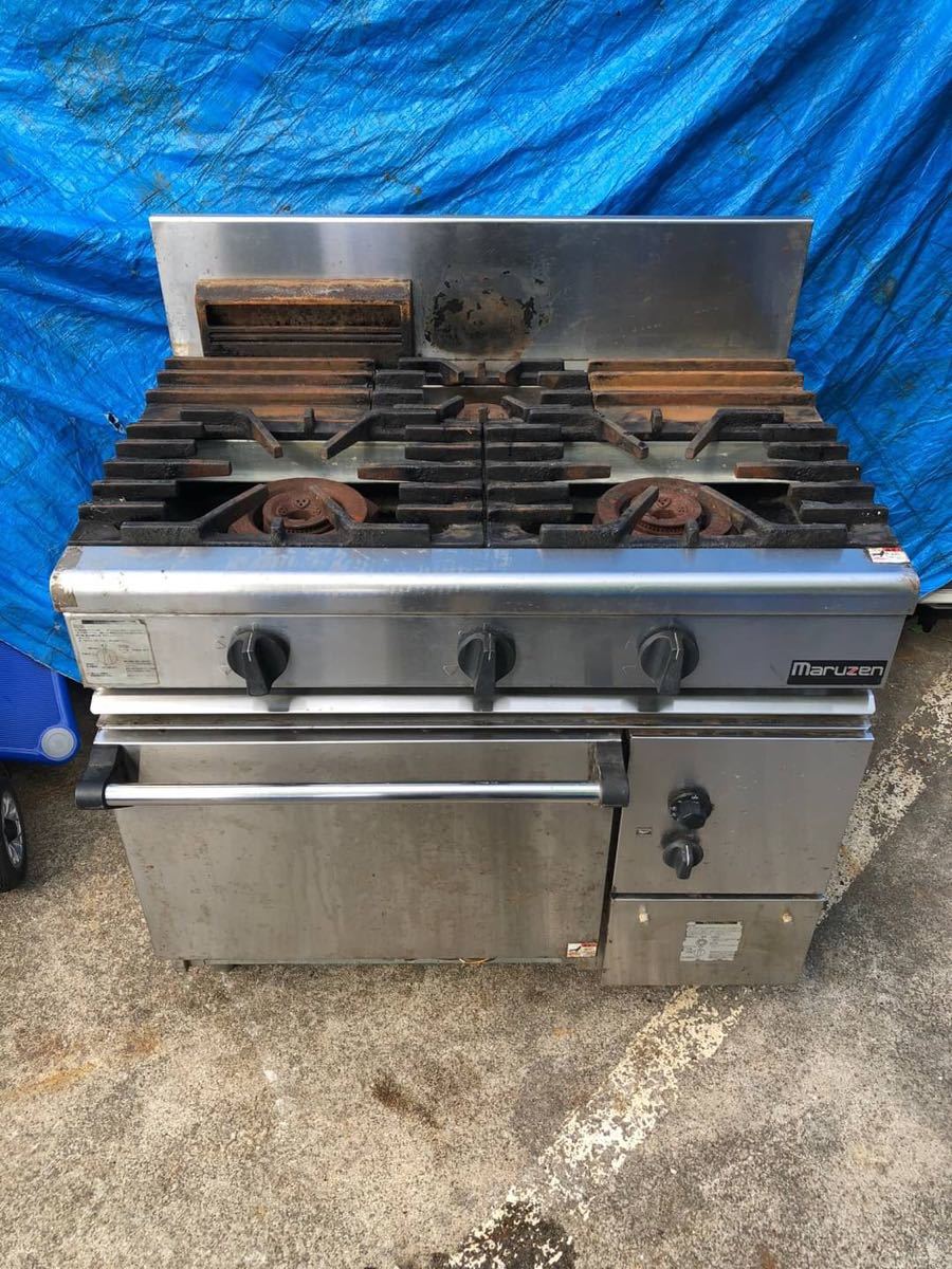 - ○D8518 マルゼン オーブン付き3口ガスレンジ 都市ガス RGR-0963B○