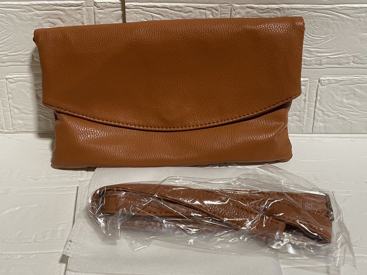 - 新品☆ショルダーバッグ ストラップ取り外し可 肩掛け キャメル ブラウン 茶色 クラッチバッグ セカンドバッグ