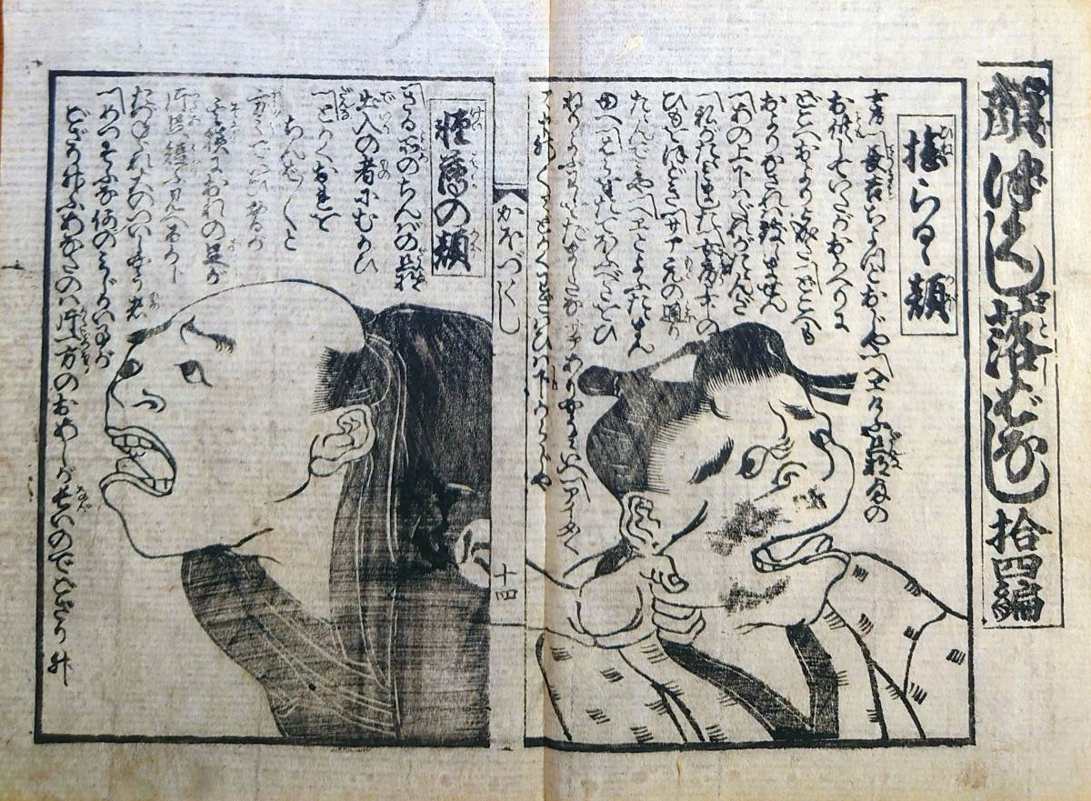 - f230901014〇一枚刷り 浪花みやげ第2編第5集 顔づくし落ばなし 14編 ことば遊び しゃれ なぞ 判じ絵 見立番付 天保年間 塩屋喜兵衛板