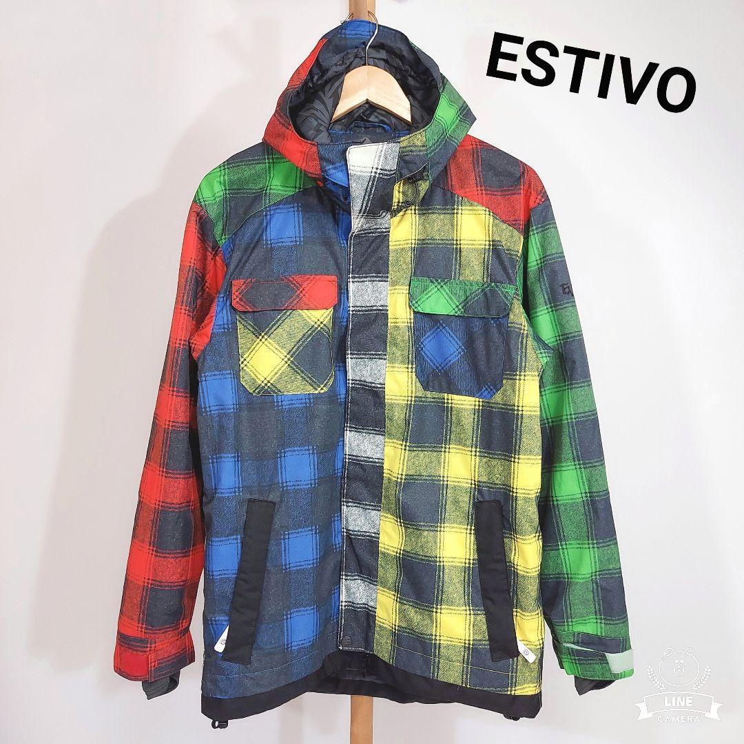 > ESTIVO スノボ&スキー・裏フリース ナイロンジャケット・マルチカラー 表記サイズS メンズ アシンメトリー チェック柄 79971