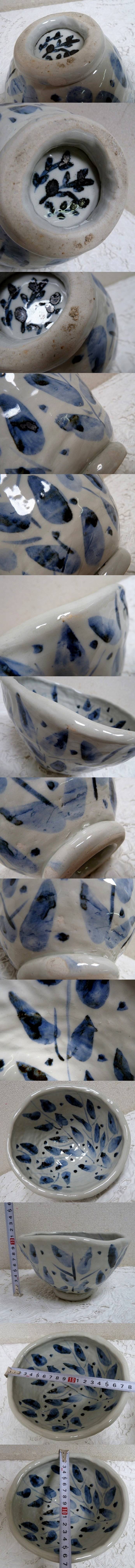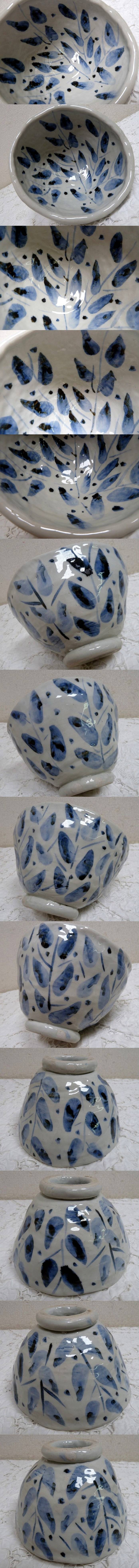 > (☆BM)染付 茶碗型 花器 水盤 染付 葉柄 日本伝統工芸 丼 華道具 水盤 陶器製 器