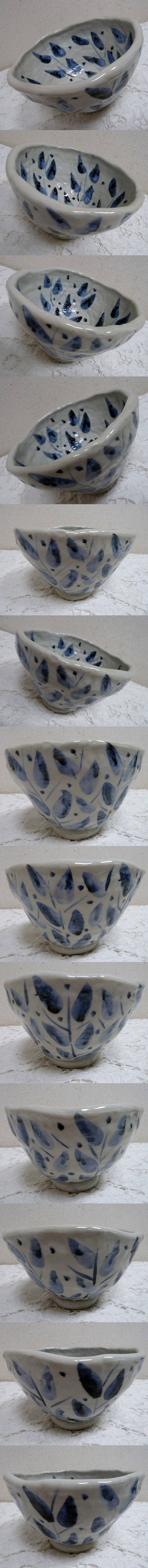 - (☆BM)染付 茶碗型 花器 水盤 染付 葉柄 日本伝統工芸 丼 華道具 水盤 陶器製 器