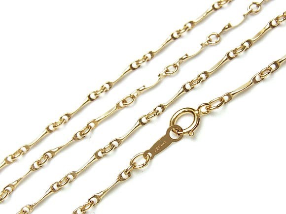 特殊なバーとリングが交互に連なった個性的なネックレスになります。
