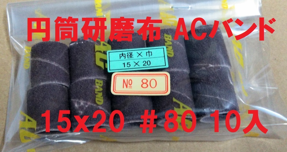 - ACバンド 15mmΦx20mm巾 #80 10入りセット 円筒研磨布 株式会社イチグチ