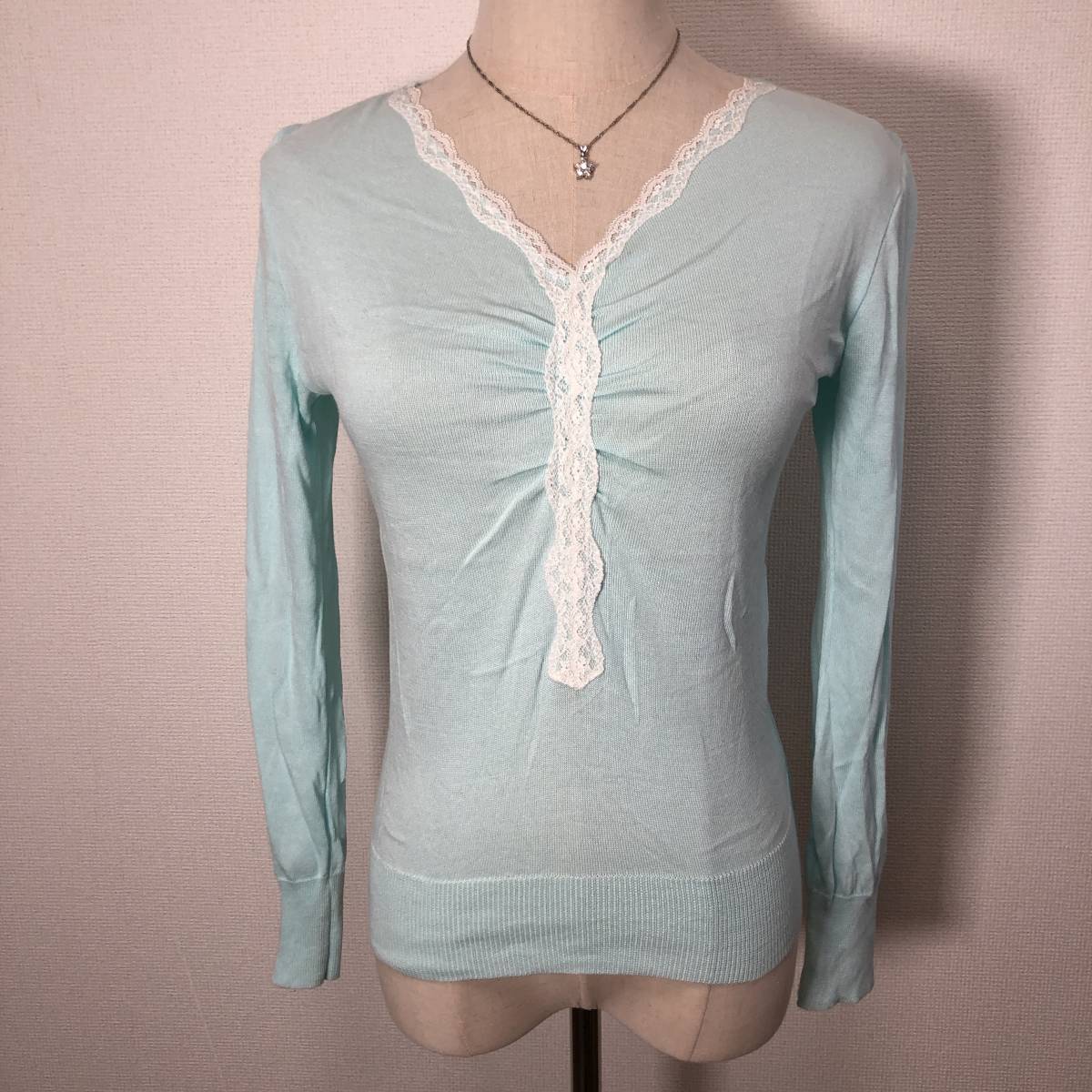 - WS0299 美品 Stimulus レディース ニット 長袖 かわいい 38(M) 水色 パステル レース レーヨン混紡 上品 フェミニン きれい色 きれいめ