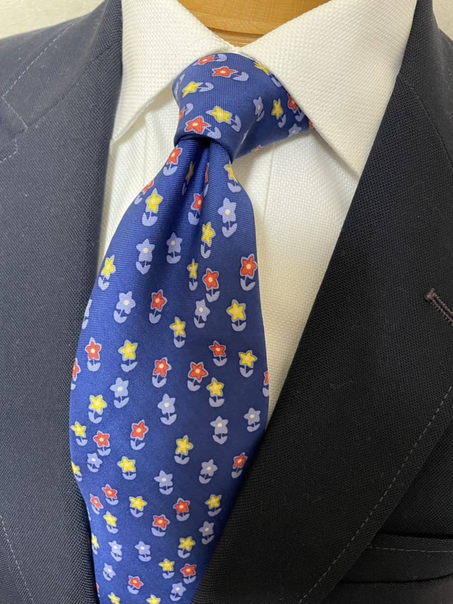 - 【美品】Paul Fredrick(ポールフレドリック) シルクネクタイ 花柄USA製 イタリア製高級シルク生地 ブルー基調