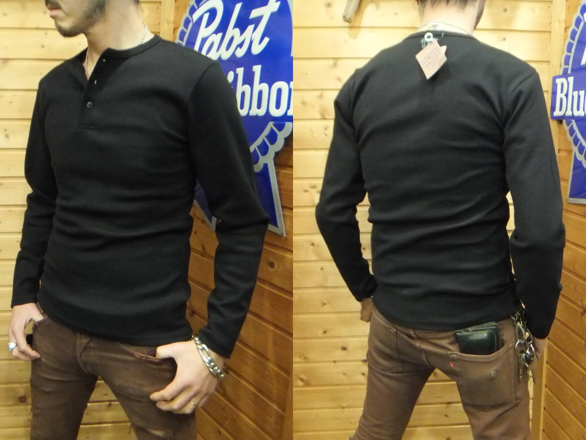 - アヴィレックス正規店 リブ素材 長袖Tシャツ[3つボタン=ヘンリーネック][黒][M]新品 6153482-09 ※〒レターパック発送