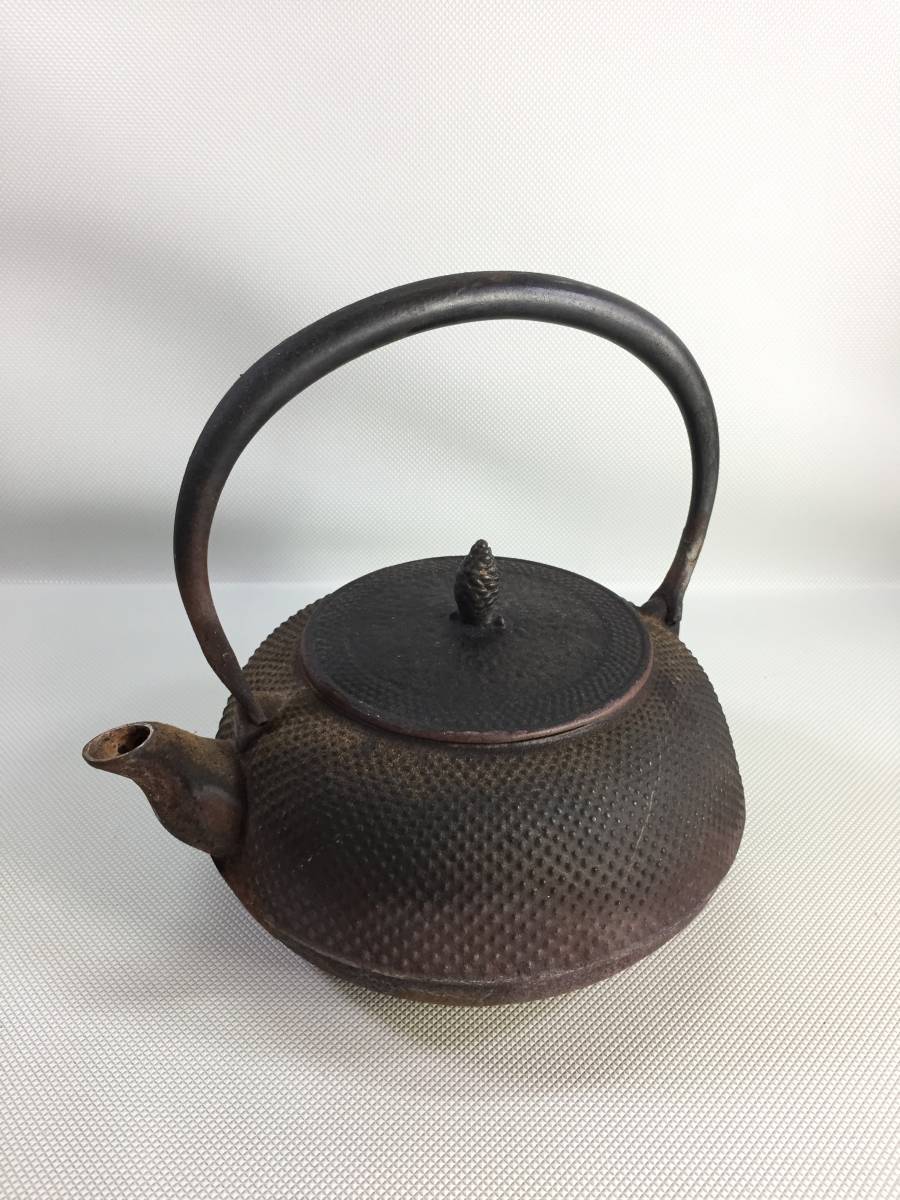 - S2672●鉄瓶 急須 やかん 湯沸かし アラレ 霰 茶道具 茶器 伝統工芸 骨董品 工芸品 高さ約9.5㎝ 幅約20㎝ 底約11㎝ 刻印あり 現状品 中古