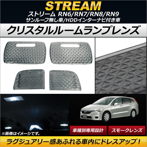 - クリスタルルームランプレンズ ホンダ ストリーム RN6/RN7/RN8/RN9 サンルーフ無し車/HDDインターナビ付き車 スモーク