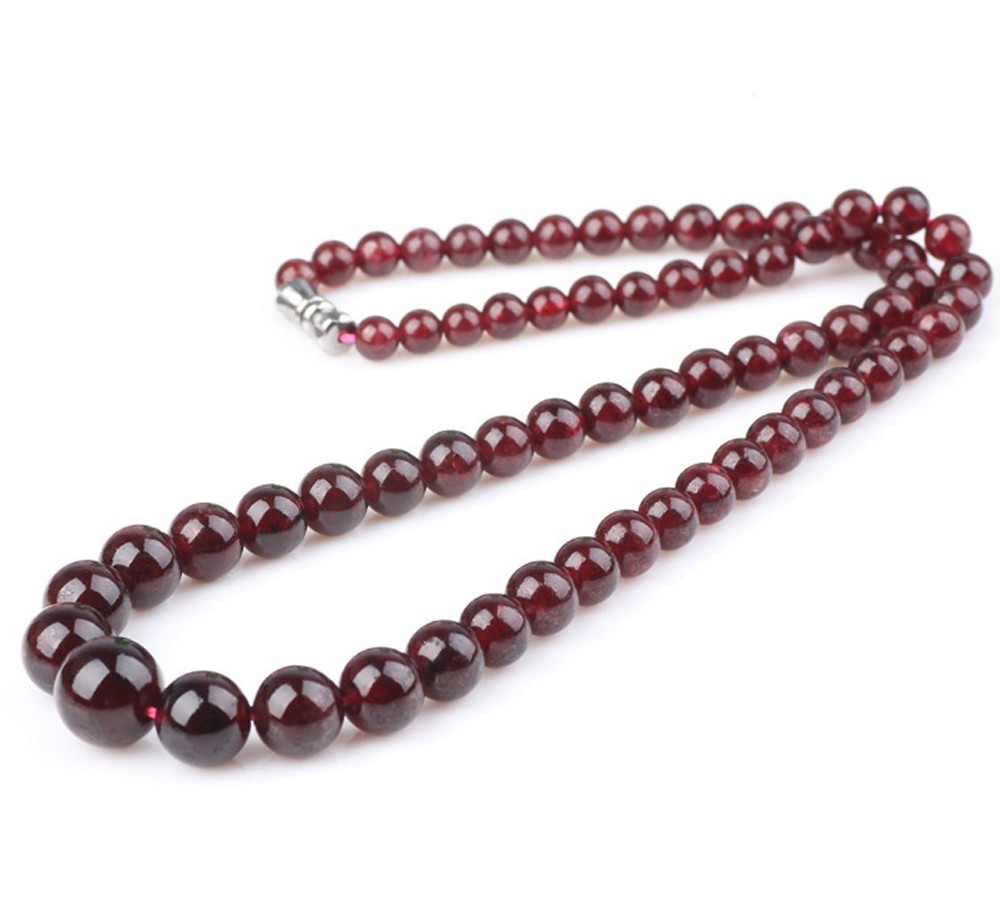 - [EasternStar] 海外発送 天然石 ネックレス 玉サイズ6-14mm 長さ約42㎝ パワーストーン Power stone ガーネット