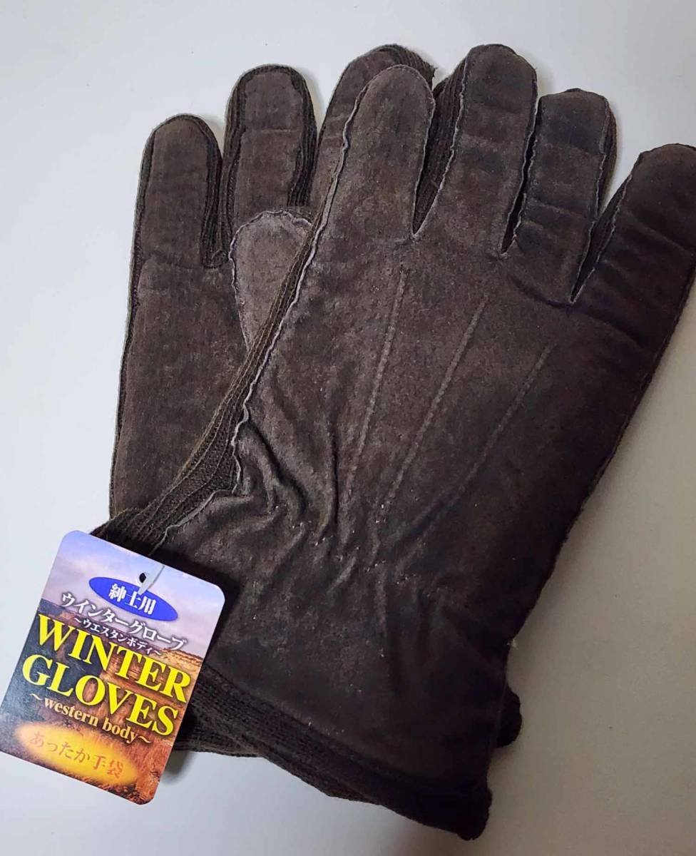 - 本革スウェード/定番手袋/焦茶/裏フリース/フリーサイズ2023
