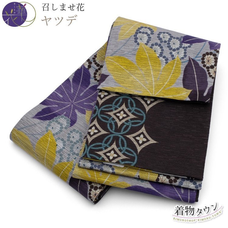 > ☆着物タウン☆ 半幅帯 正絹 召しませ花 ヤツデ リバーシブル ゆかた 細帯 半巾帯 細帯 日本製 紬 小紋 浴衣 hanhabaobi-00001