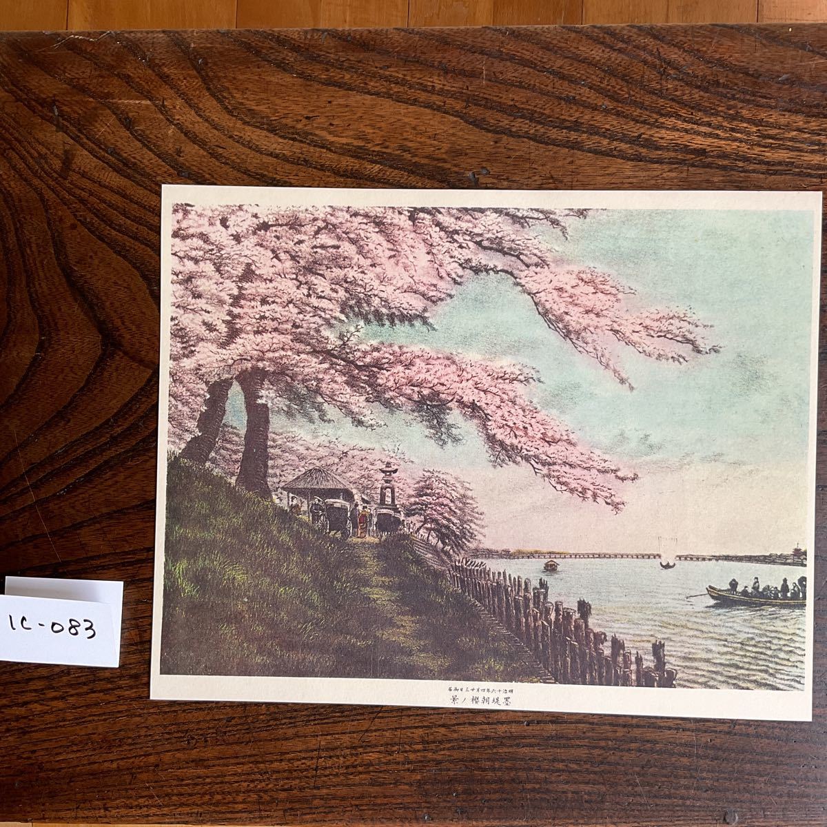 - ★墨堤朝櫻ノ景★明治十六年四月廿三日御届★渡し舟★帆舟★蔵出し★1C-083★見物客★
