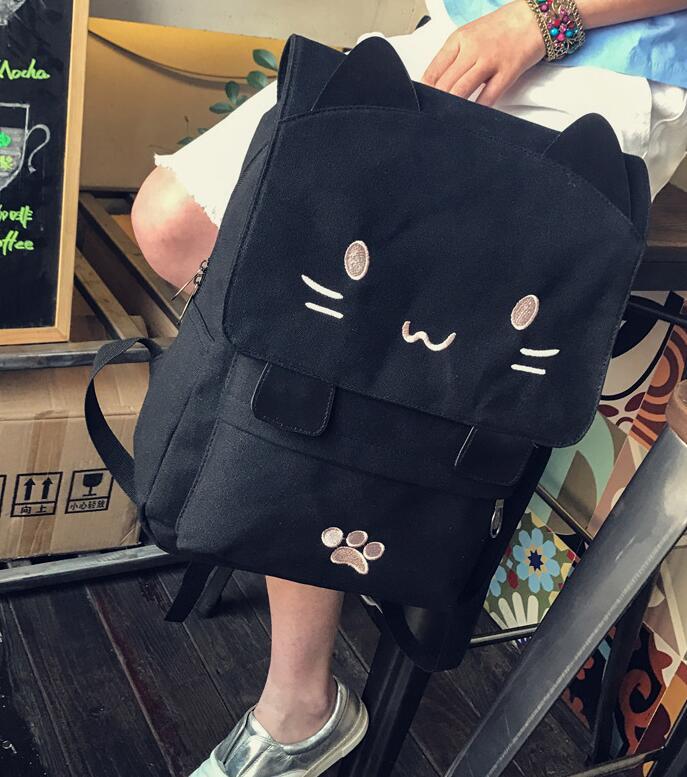 - 秋物 デイパック リュック レディース SCIONE 海外ブランド 高品質 キャンバス 選べる2色 猫 可愛い バックパック 黒