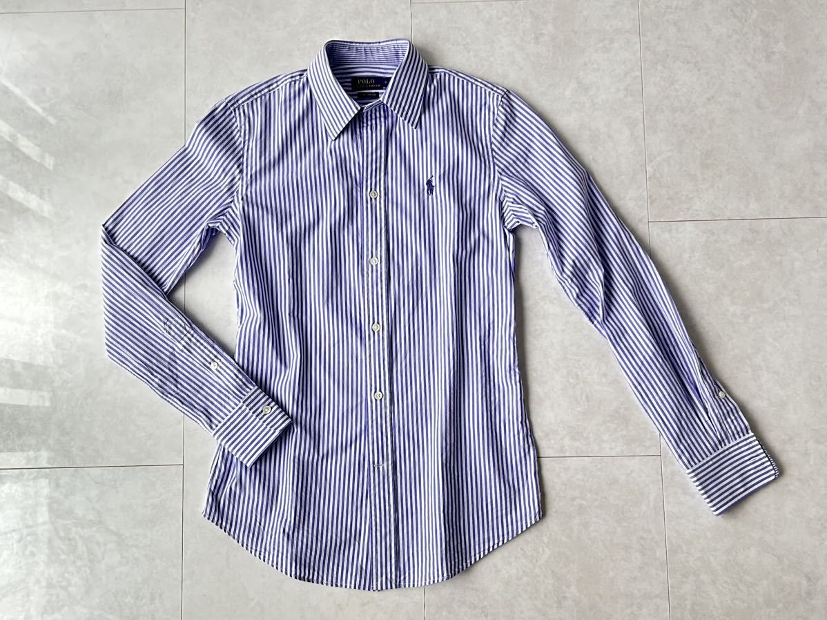 - ラルフローレン RALPH LAUREN ストライプシャツ スリムストレッチ 長袖シャツ ブラウス サイズ0
