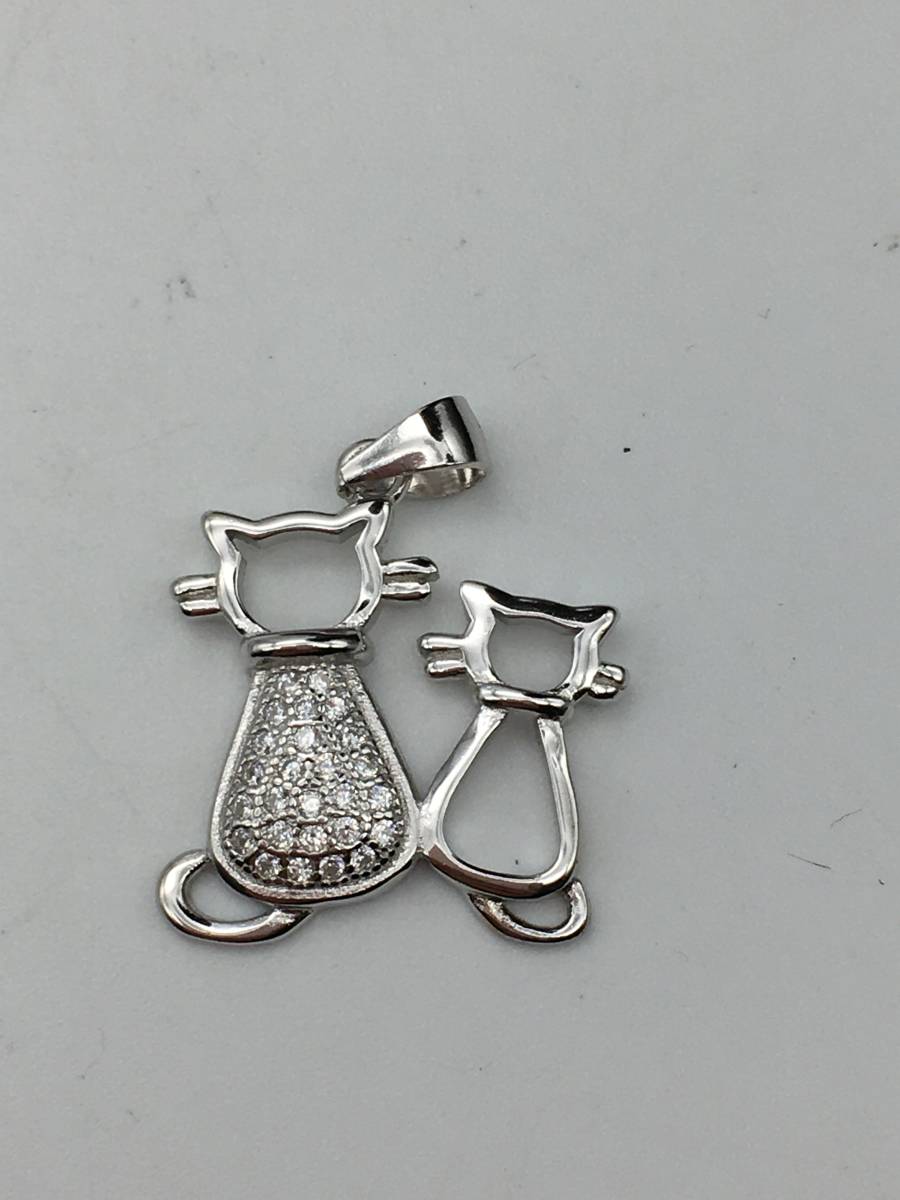 - 【2004】シルバーアクセサリー ペンダントトップ ネコ ダブル 925 121 *【359101000004】