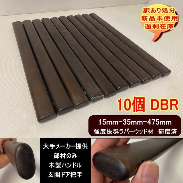 > 玄関ドア把手 楕円形 木製 10本セット DBR ダークブラウン ラバーウッド 無垢材 強度抜群 15-35-475mm 送料無料 訳あり処分