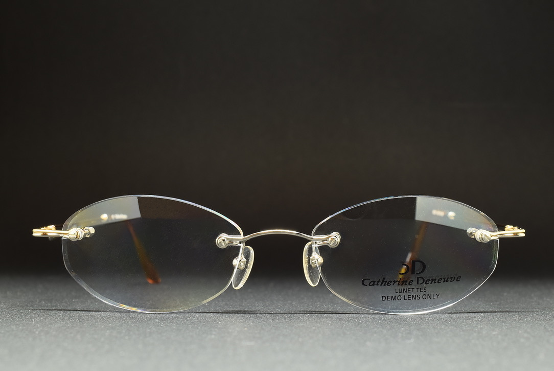 - 未使用品 Catherine Deneuve LUNETTES CD-164 49-18 ツーポイント メガネ サングラス フレーム ふちなし リムレス ゴールド/シルバー
