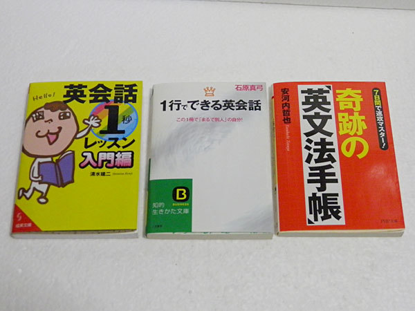 - 英会話1秒レッスン 清水建二、1行でできる英会話 石原真弓、奇跡の英文法手帳 安河内哲也 文庫本3冊セット