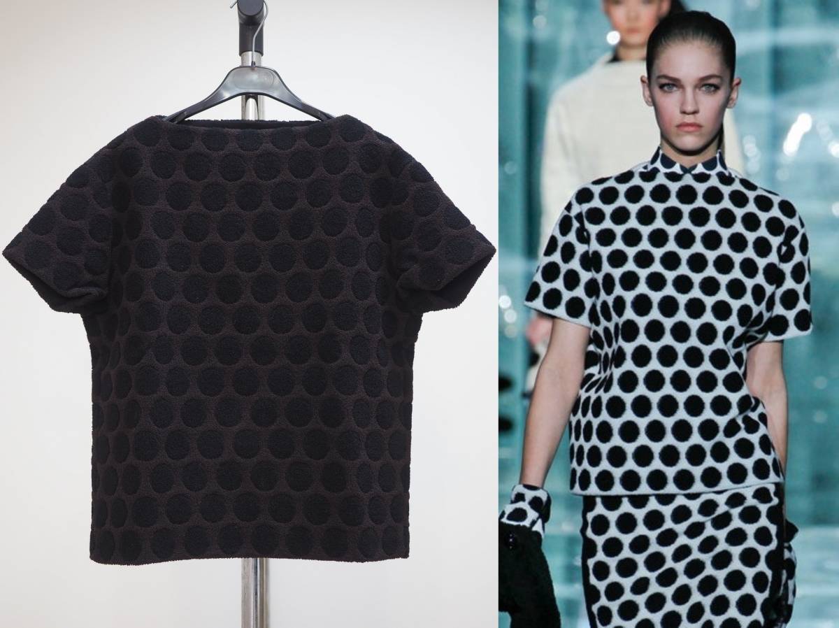 > 美品 マークジェイコブス レディース 11AWドット柄半袖厚手ニットS茶×黒 Italy製 MARC JACOBS ファーストライン
