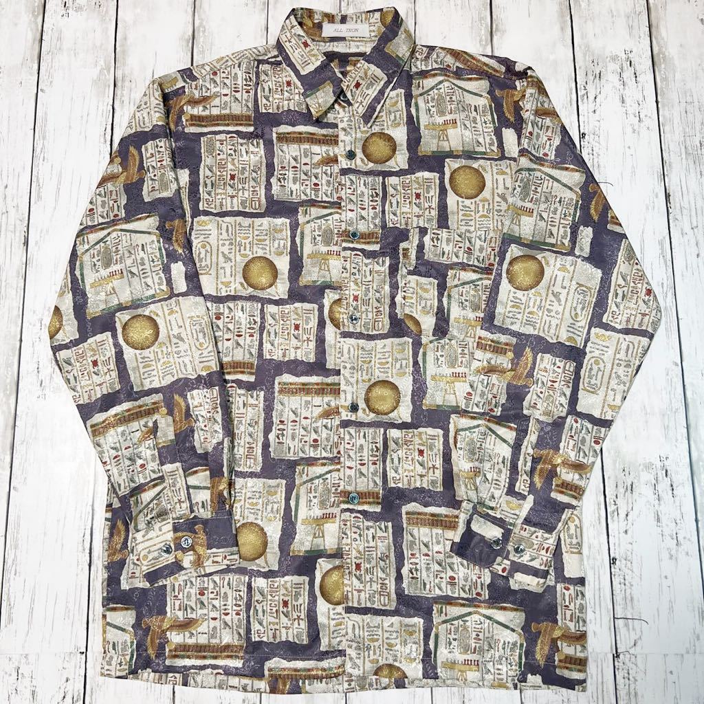 - ALL TRON 総柄 柄シャツ シャドー 刺繍 レトロ アート ビンテージ 長袖シャツ ポリエステル100%