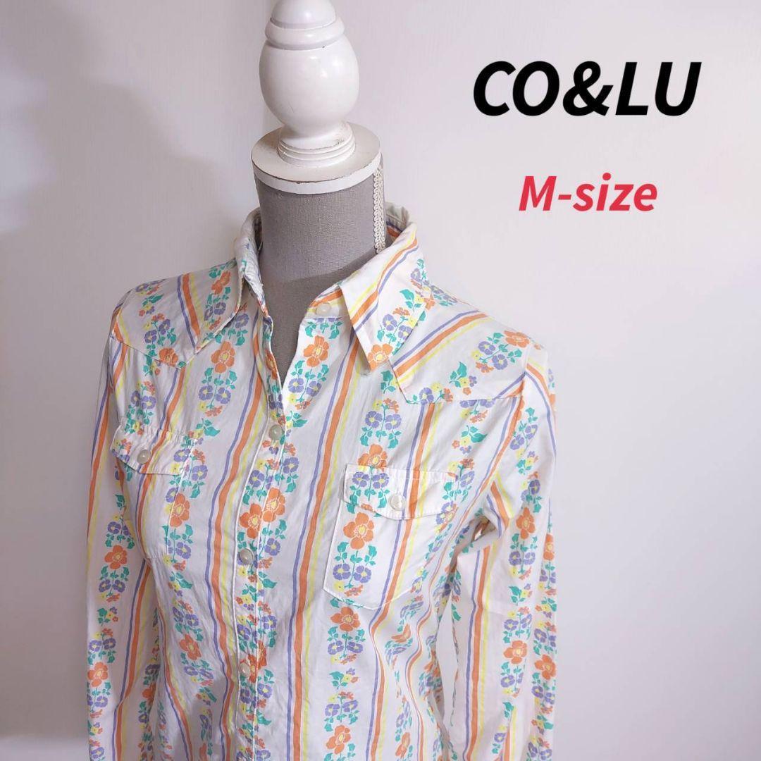 - ココルル CO&LU 花柄&ストライプ・長袖ウエスタンシャツ 表記サイズM 白&ライトパープル&オレンジなど Y2K 渋谷109 ギャルCOCOLULU 67757