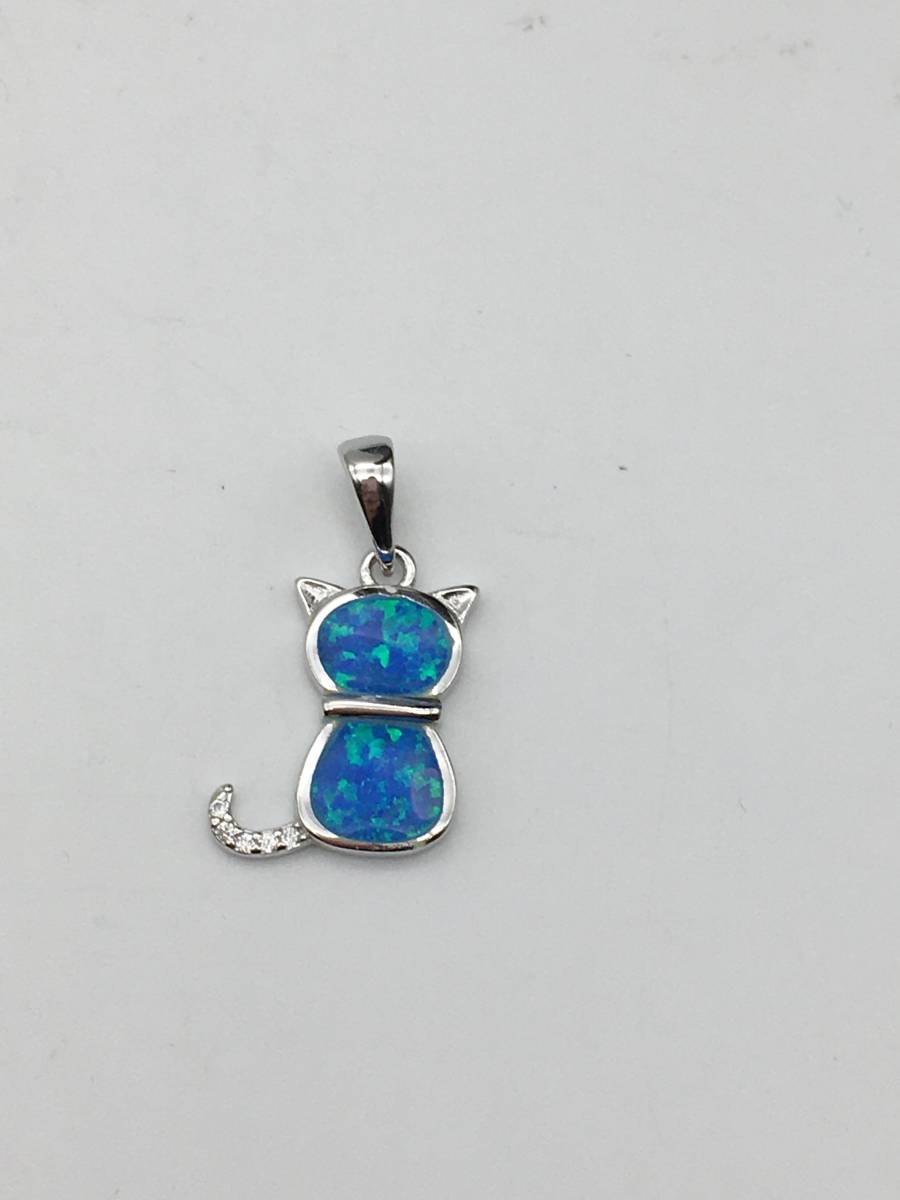- 【2004】シルバーアクセサリー ペンダントトップ ネコ 青 925 122 *【359101000005】