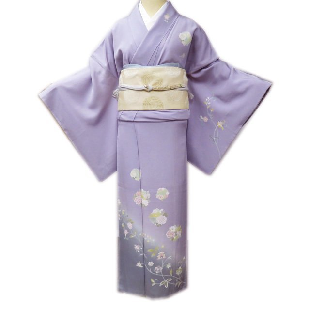 > 付下げ 付け下げ 訪問着 着物 中古 正絹 袷 フォーマル 花の図 暈し 薄紫色 多色 身丈167cm 裄70.5cm L トール きもの北條 A951-2