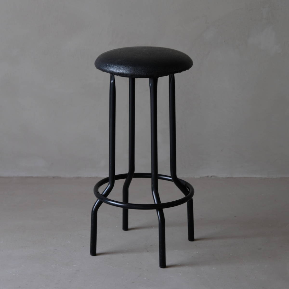 - 02683 合皮座面の鉄脚ハイスツール / 丸椅子 チェア ヴィンテージ レトロ 工業系 古家具