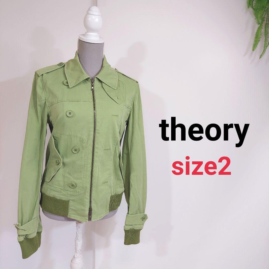 > Theory コットン素材ブルゾン・若草色ライトグリーン エポレット付き 表記サイズ2 M 79840