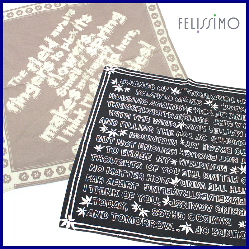 - バンダナ ハンカチ フェリシモ 正方形 コットン 英文字柄 ◆ ベージュ ブラック / 2点