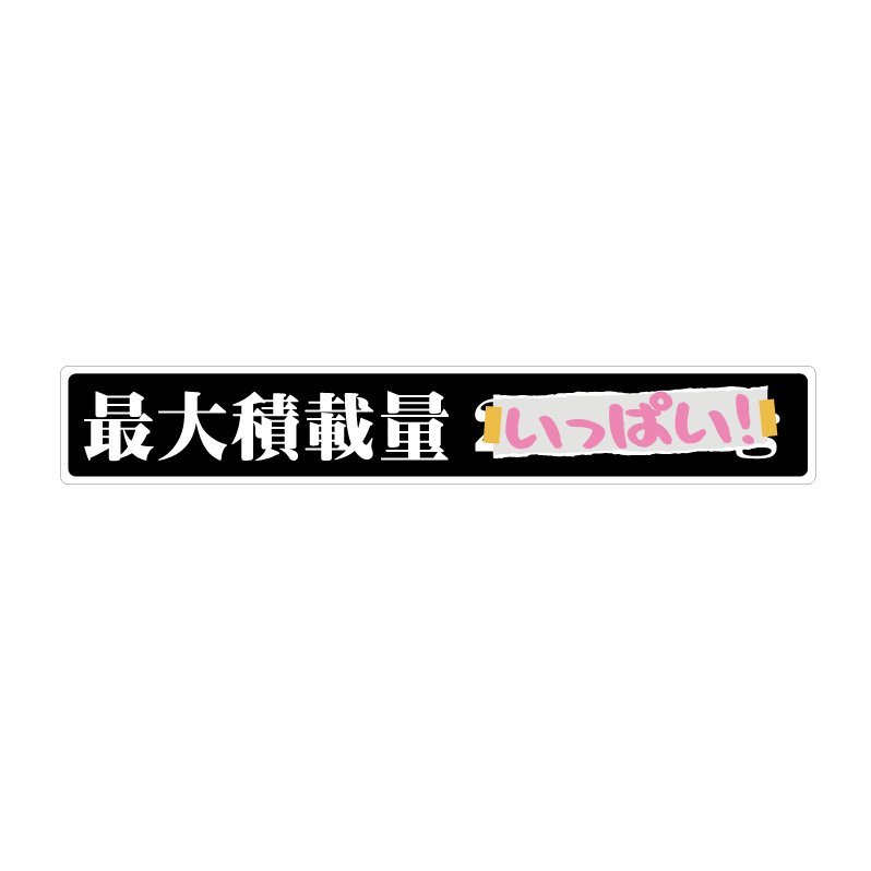 > 最大積載量 (いっぱい!) 1枚 ピンク 積載量風ステッカー 黒ベース 22cm×3.5cm 手書き風トラック ネタ ユーモア