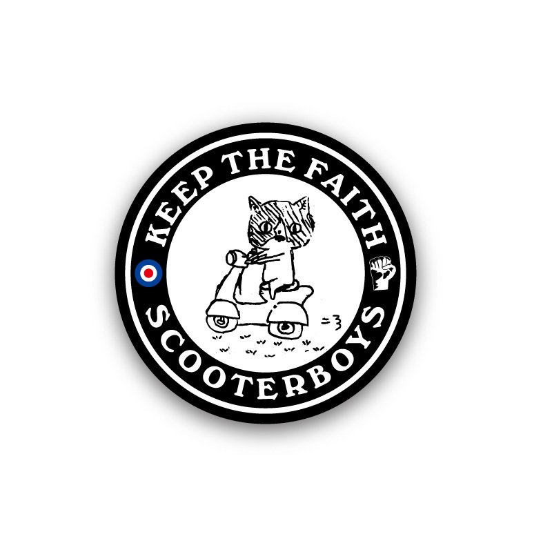 - 缶バッジ 44mm scooterboys 黒 キャップ 帽子 バックパック リュック イラスト ネコ 黒猫 vespa lambretta シンボル scooter 缶バッチ