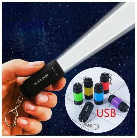 - ミニ 懐中電灯 USB 充電LED ポータブル キーホルダー付 ブラック 未使用品 送料無料