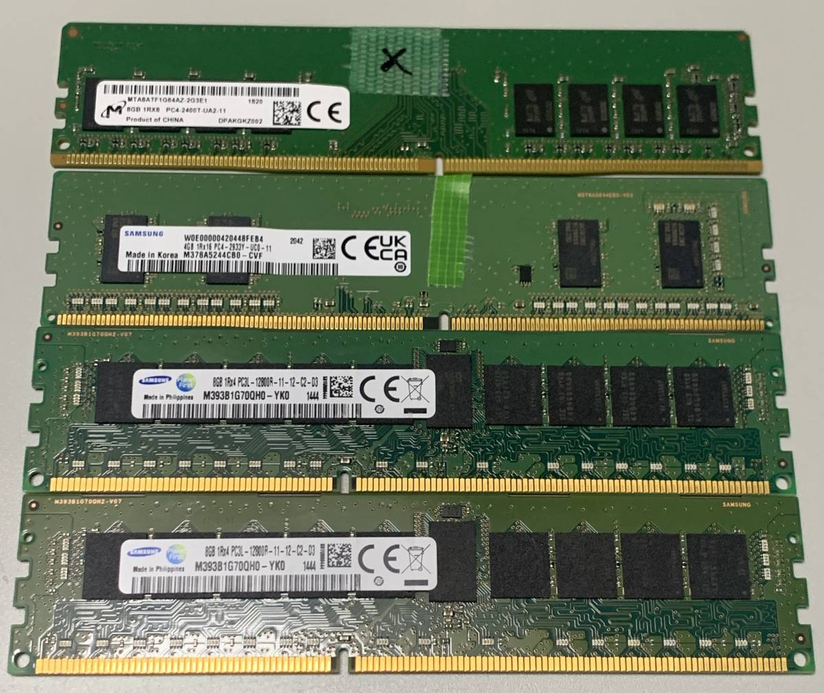 - ジャンク/未確認メモリ 4枚 DDR4 4GB 8GB サーバー用 DDR3L 8GB 2枚 / MTA8ATF1TG64AZ-2G3E1 M378A5244CB0-CVF M393B1G70QH0-YK0